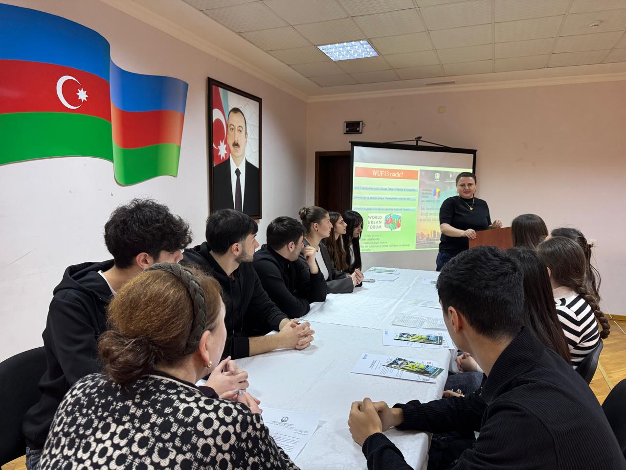 Tədbiri kimya müəllimi Səbinə Qasımova açaraq BMT-nin Ümumdünya Şəhərsalma Forumu – WUF13 haqqında iştirakçılara ətraflı məlumat verdi, forumun məqsədi və davamlı şəhərlərin formalaşdırılmasında əhəmiyyəti barədə danışdı.